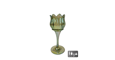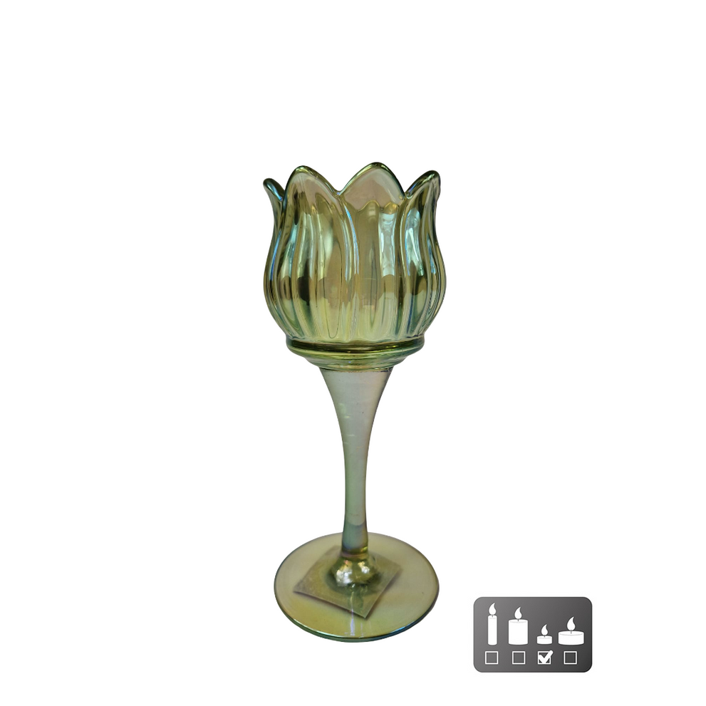 Theelichthouder "Tulip" S luster groen glas 7x7x16cm