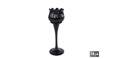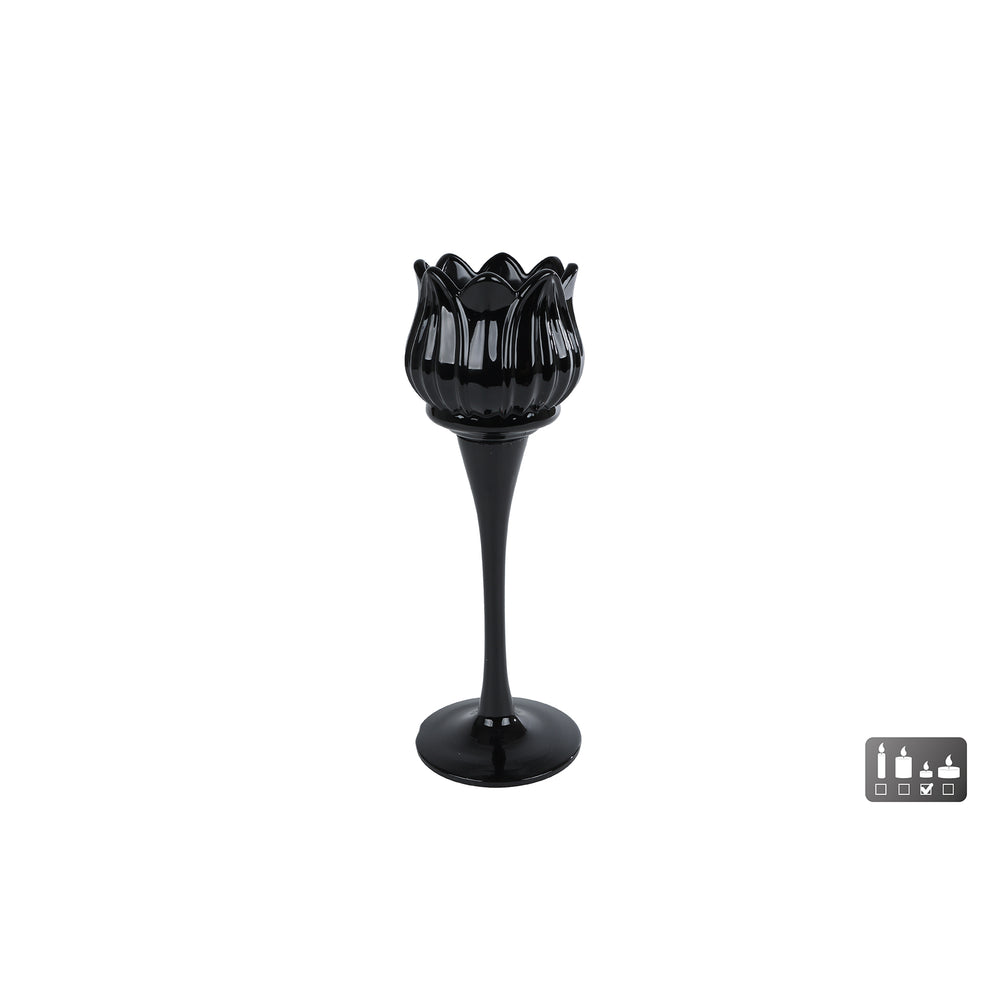 Theelichthouder "Tulip" zwart glas 7x7x22cm