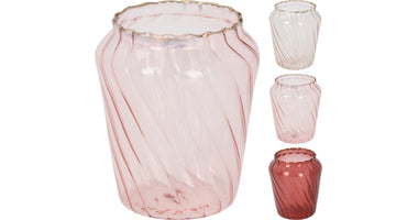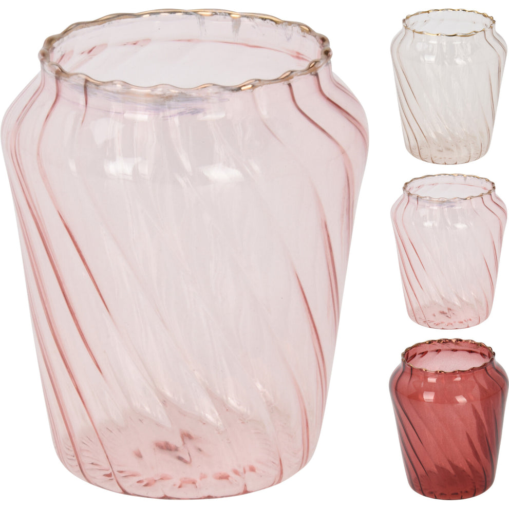 THEELICHTHOUDER/VAASJE GLAS 7CM 3 ASSORTIE KLEUR