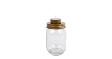 Theelichthouder "Yanika" S helder/goud metaal 8x8x14,5cm (exclusief kaars)