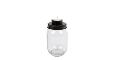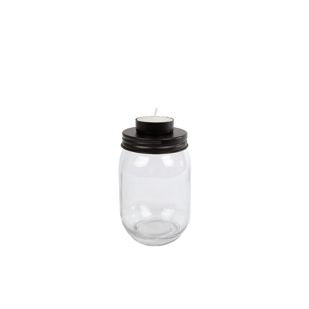 Theelichthouder "Yanika" S helder/zwart metaal 8x8x14,5cm (exclusief kaars)