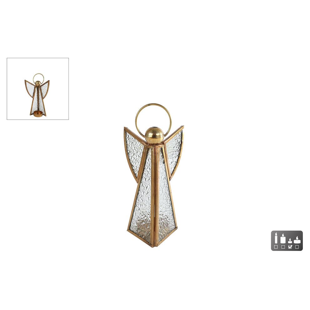 Theellichth "Engel" S helder/messing glas/metaal 8x8x18cm