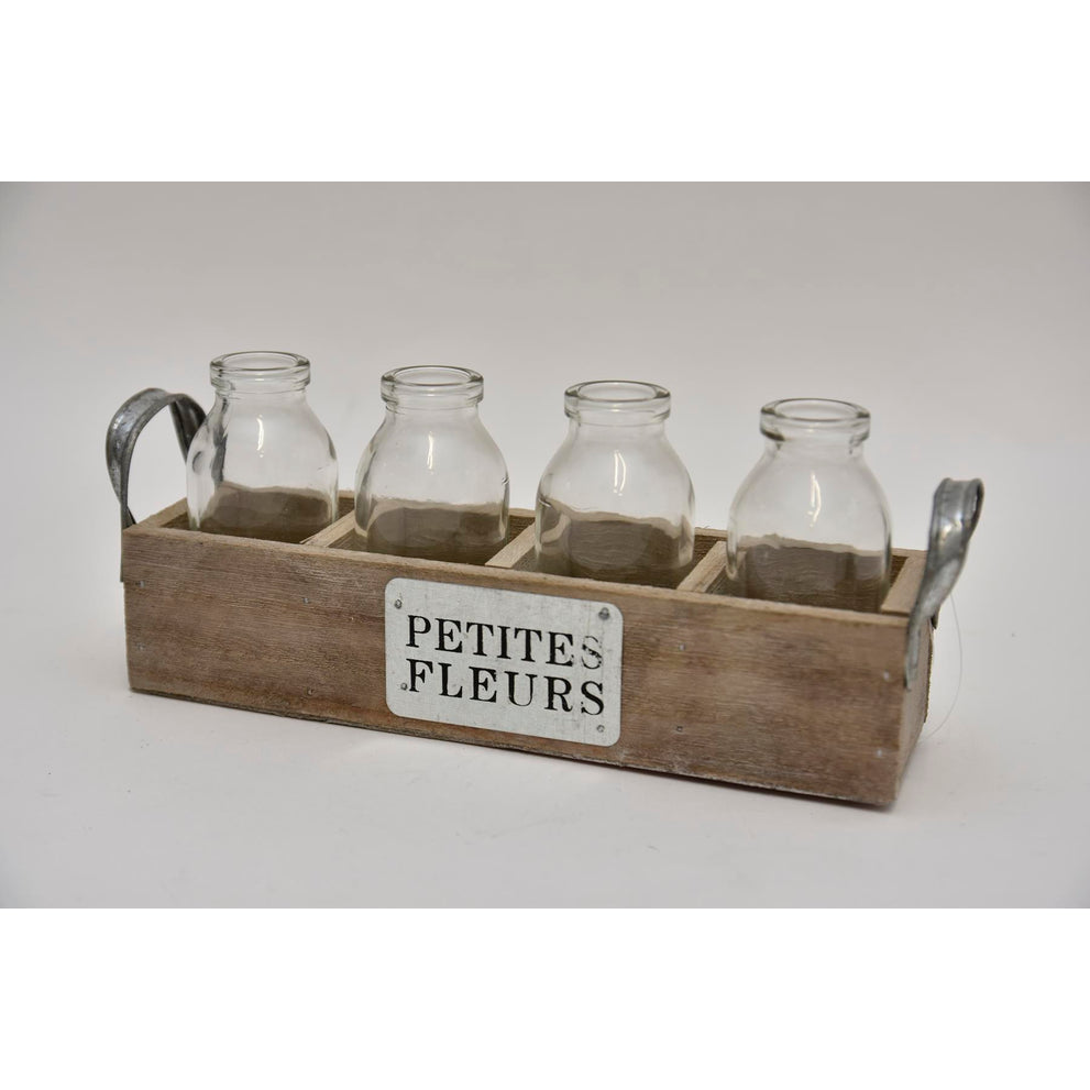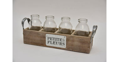 Tray grijs met 4 flesjes ''petites fleurs'' 24,5x6,7x10cm