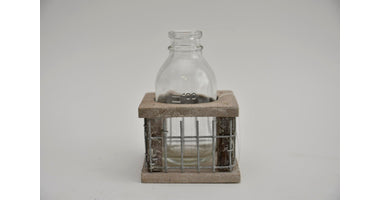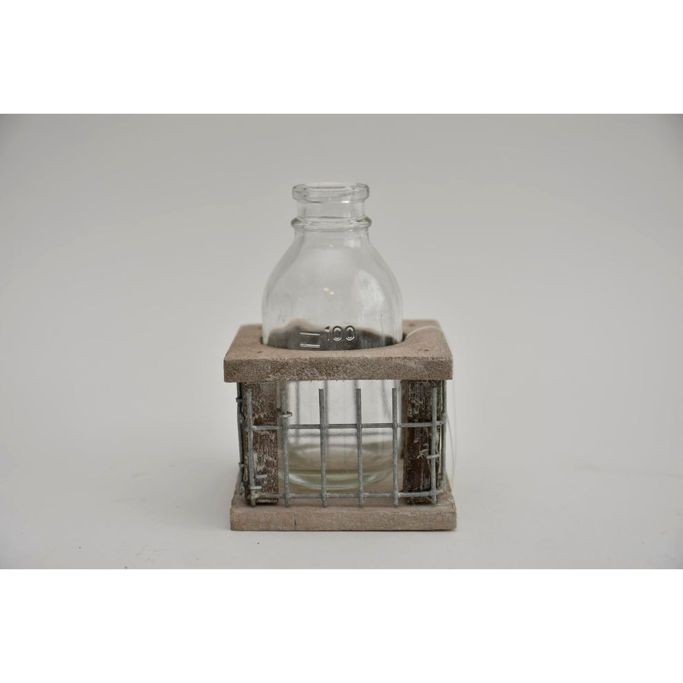 Tray hout/gaas met 1 fles grey wash 8x8x11cm