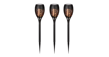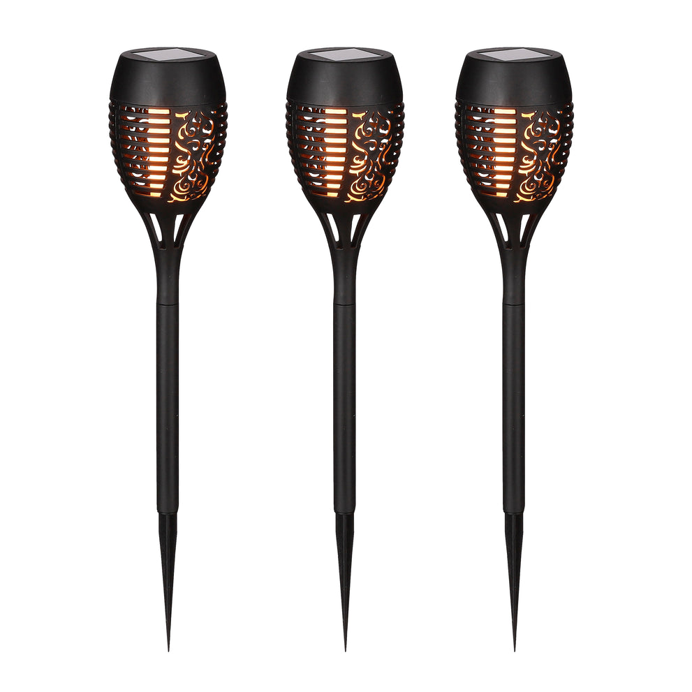 Tuinsteker fakkel zwart solar warm white 12 led - h46xd7,5cm