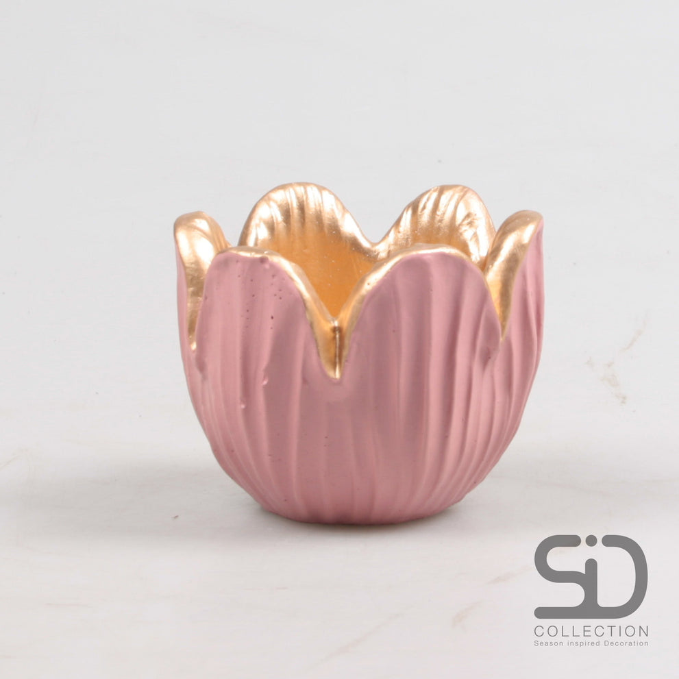 TULP WAXINELICHTHOUDER 8.5X6.5 CM PINK CEMENT