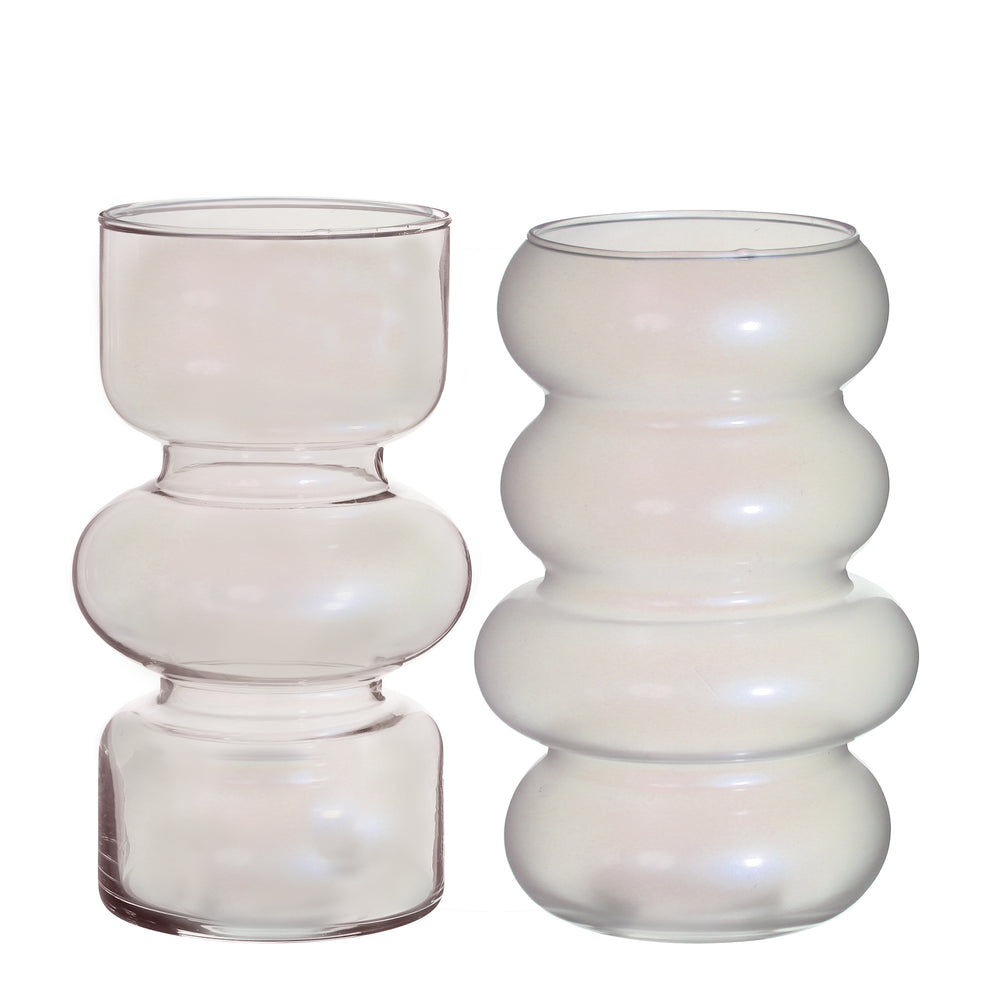Twin glass vase Ø10 h.18 cm pearl assortie