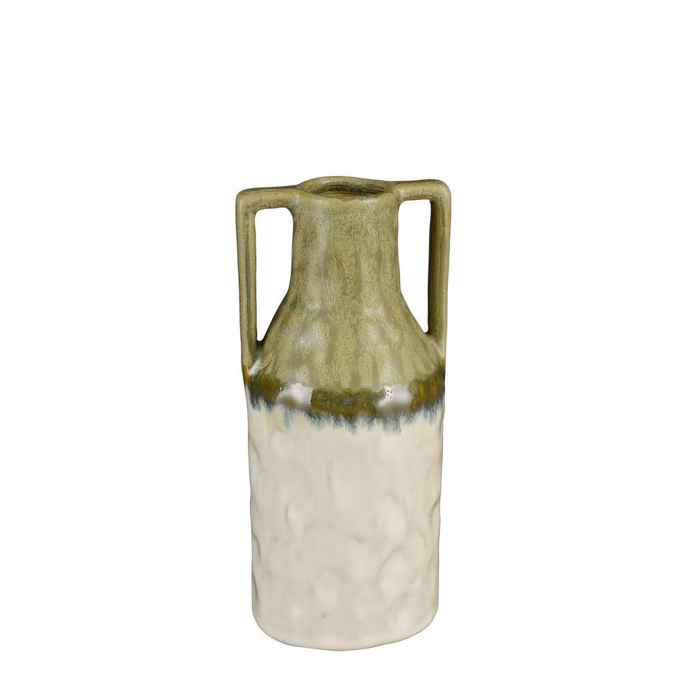 Vaas aardewerk ecru groen - l9,5xb9xh20cm