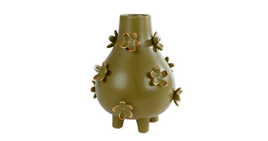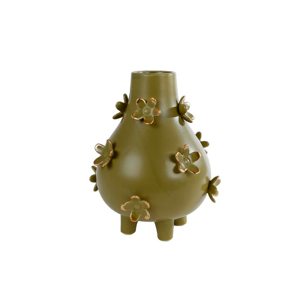 Vaas "Fleur" L groen/goud aardewerk 19x19x25cm