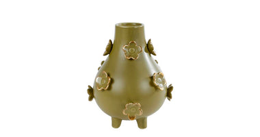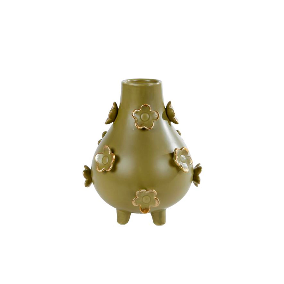 Vaas "Fleur" M groen/goud aardewerk 15,5x15x19cm