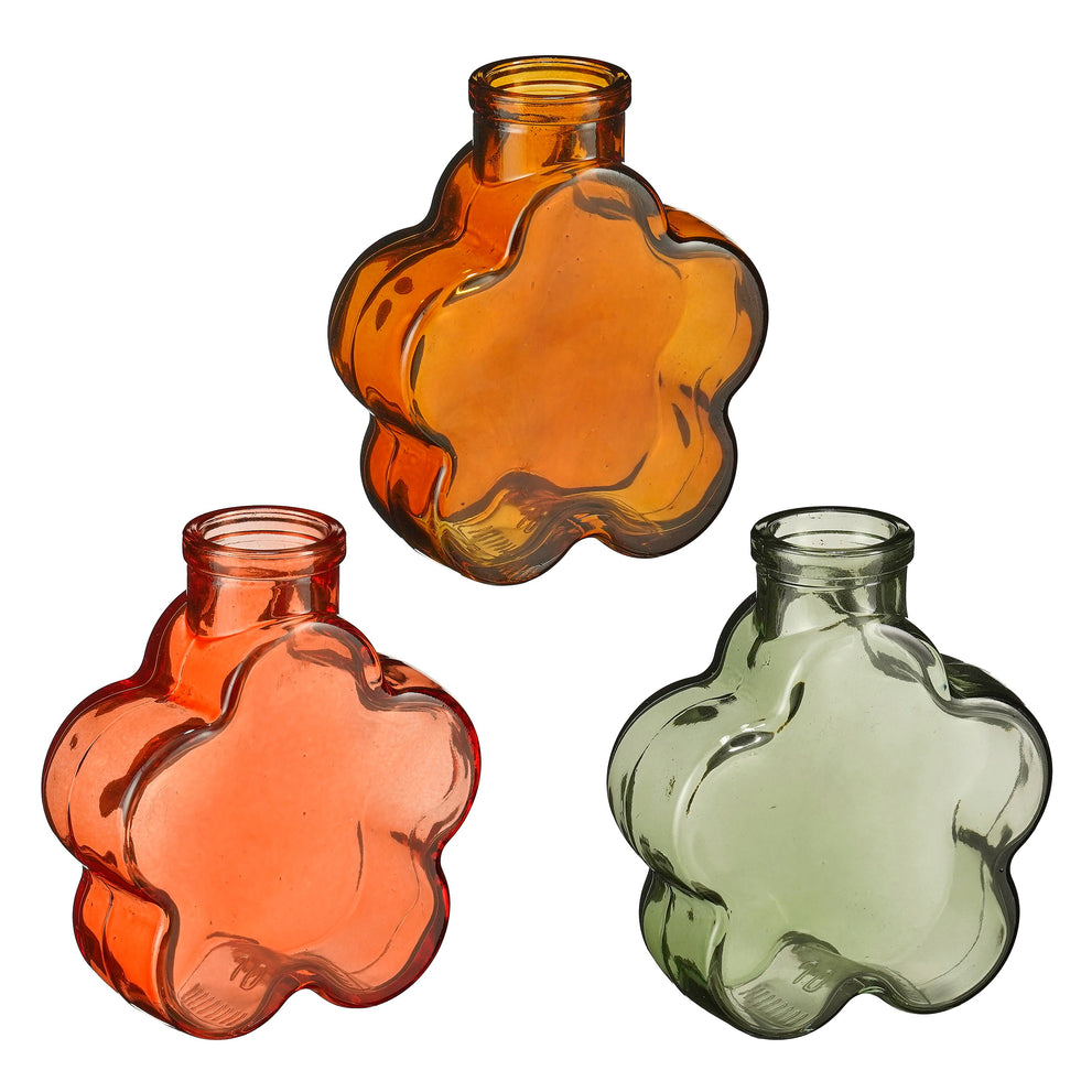 Vaas glas groen bruin oranje 3 assorti - l9xb3,5xh10cm