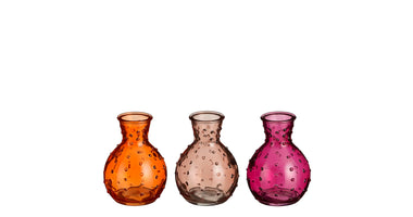 Vaas glas oranje l.roze roze 3 assorti - h10xd7cm