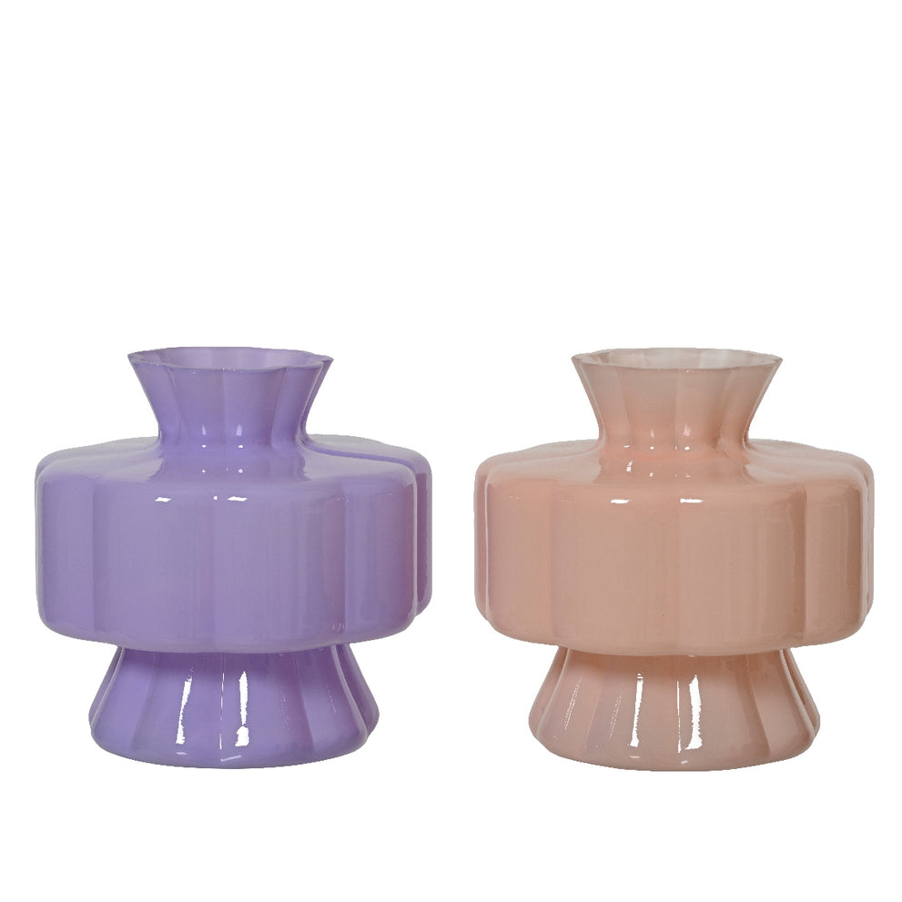 Vaas glas ''pastel'' 2 kleuren assorti H.14.5cm D.15cm