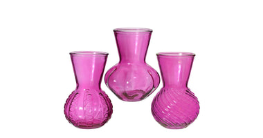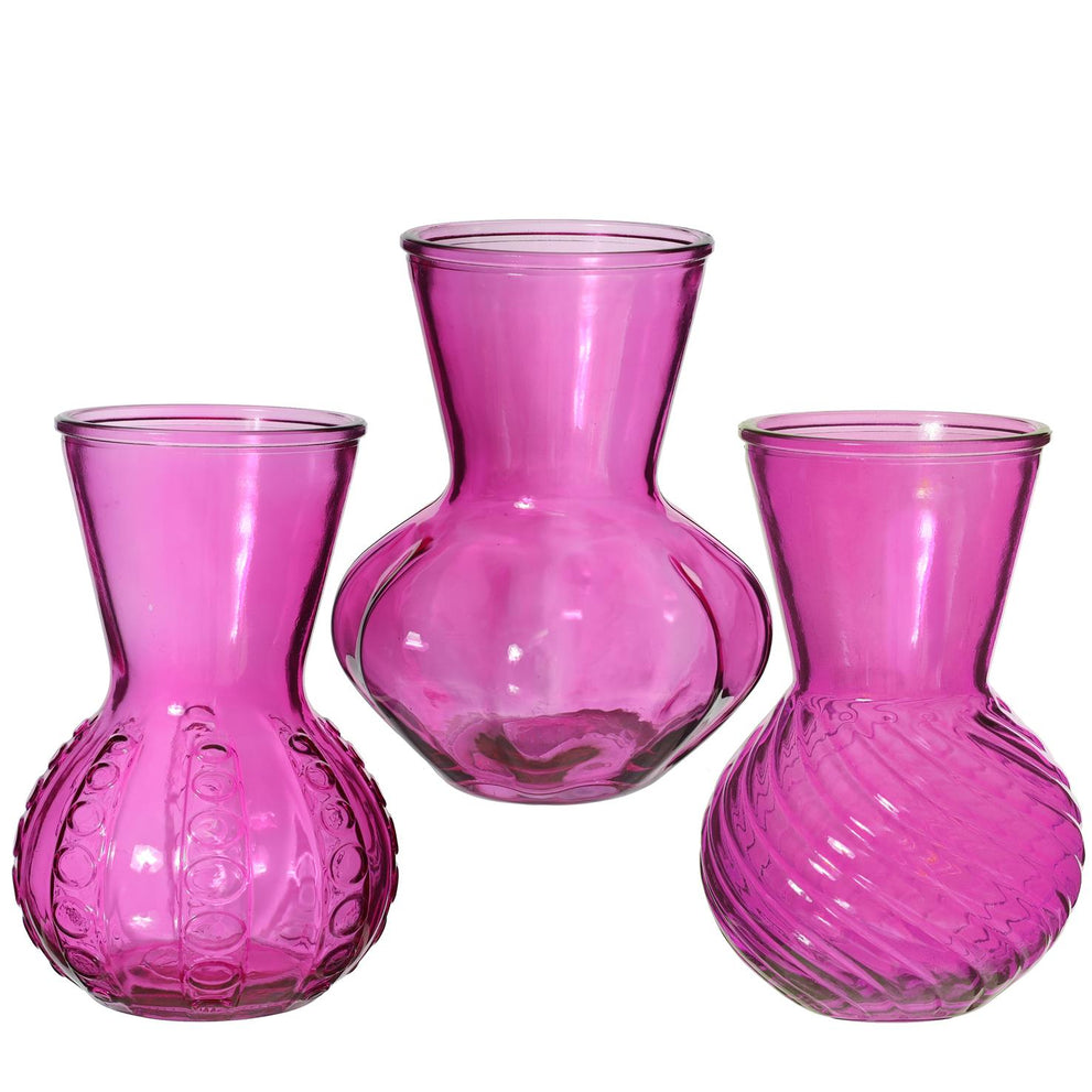Vaas Kristal glas 3 assortie Ø13 h.18 cm fuchsia