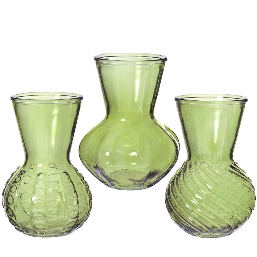 Vaas Kristal glas 3 assortie Ø13 h.18 cm lichtgroen