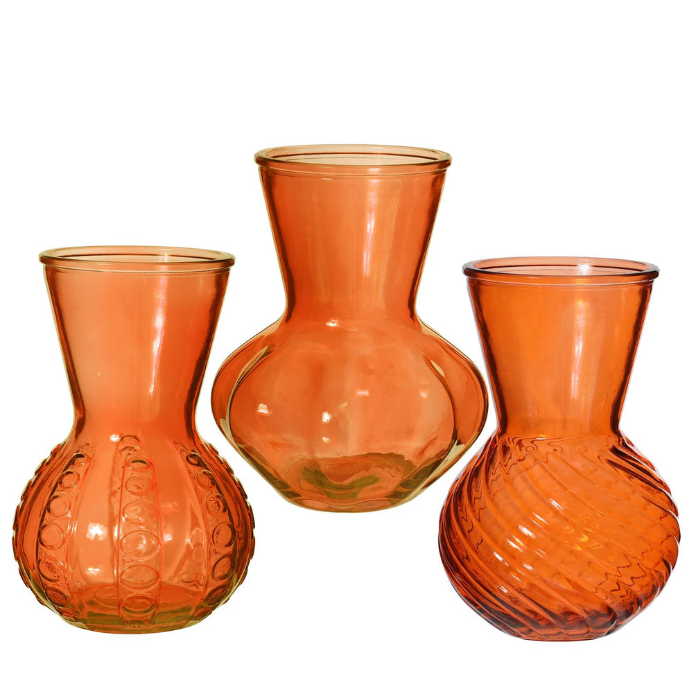 Vaas Kristal glas 3 assortie Ø13 h.18 cm oranje