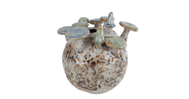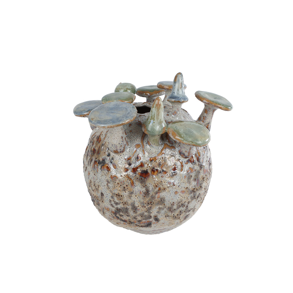 Vaas "Mushroom" creme/grijs/groen aardewerk 16,5x15x18,5cm