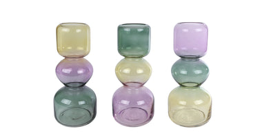 Vaas "Nour" paars/mosterd/groen 3 assortie glas 12x12x27,5cm