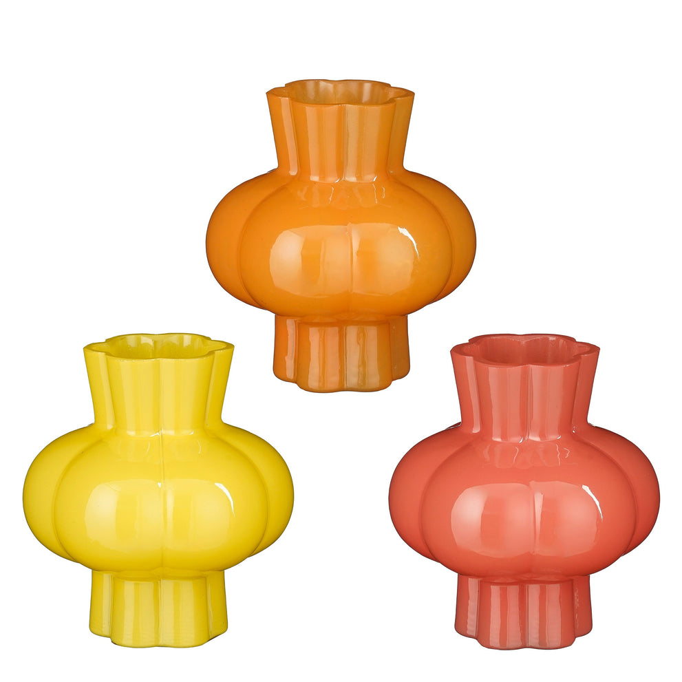 Vaas roze oranje geel 3 assorti - h12xd11cm - glas