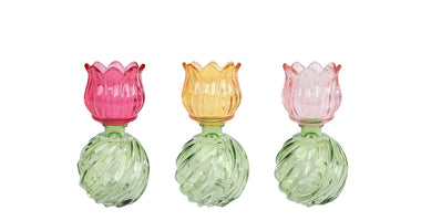 Vaas Theelichthouder glas "Tulip" roze/paars/amber 3 assortie 10x10x17cm