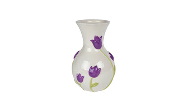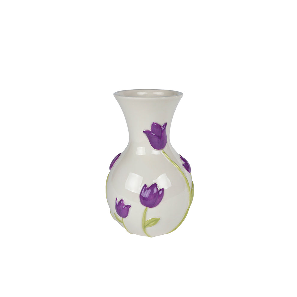 Vaas "Tulipe" wit/lila aardewerk 15x15x23cm