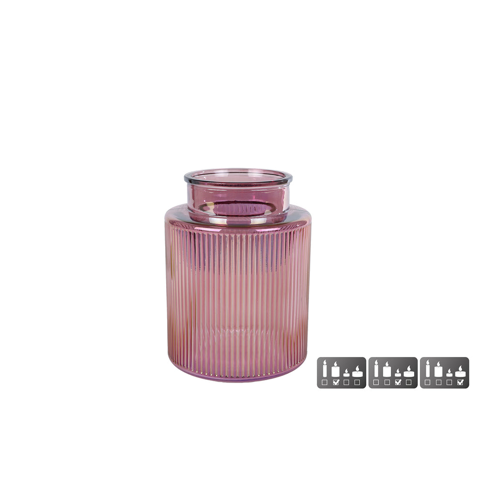 Vaas/windlicht "Niamh" S luster paars glas 13x13x17cm