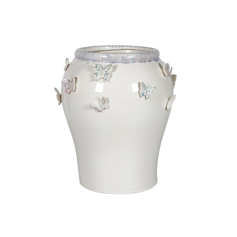 VASE CERAMIC D36X43H WHITE BUTTERFLY