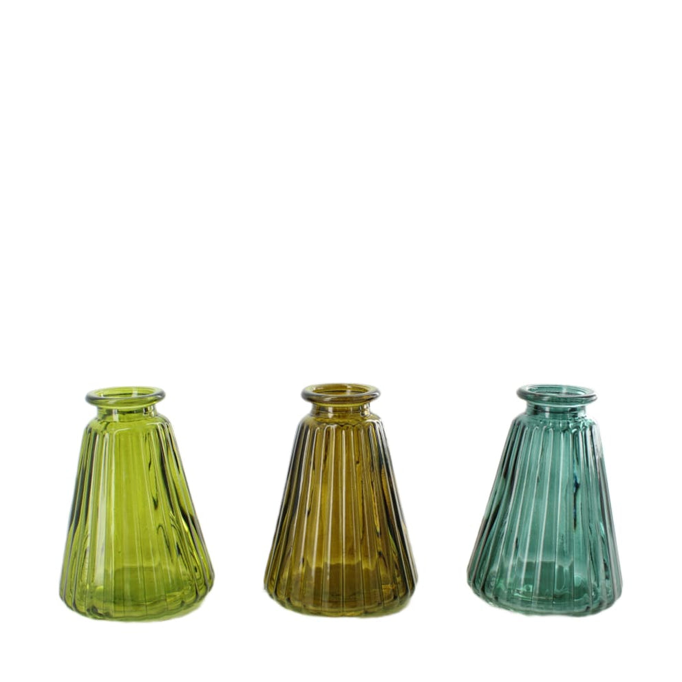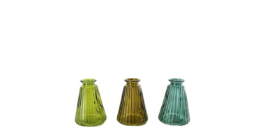 Vase glass 7.4x7.4x10cm 3 assorti Mixed green