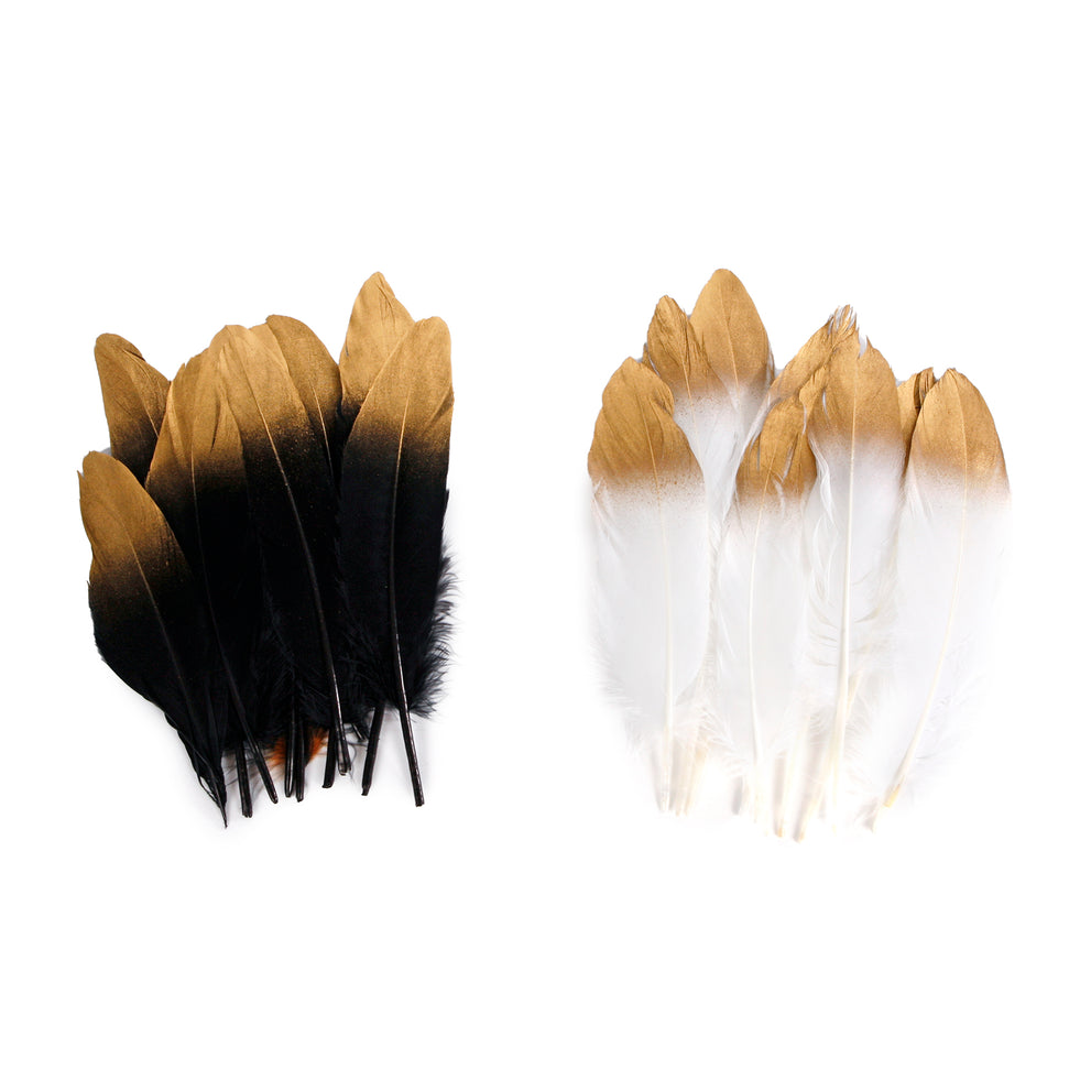 Veren 20cm wit/goud en zwart/goud assortie 10 stuks in zakje