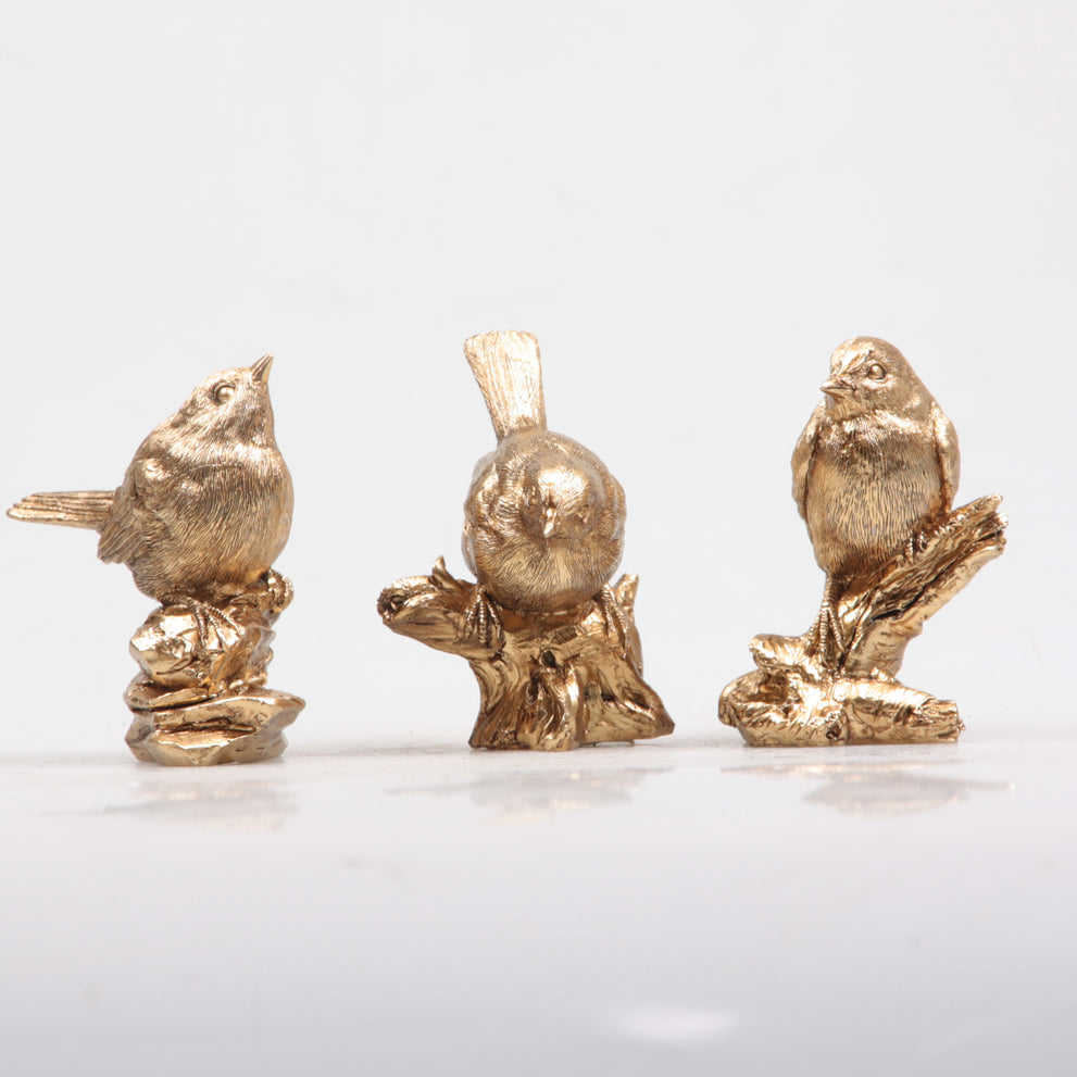VOGEL OP STEEN/STRONK 3 ASS 8.5X5X10 CM GOUD