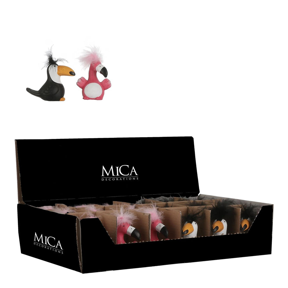Vogel roze zwart 2 assorti - l4,5xb8,5xh8cm