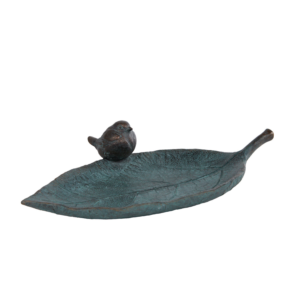 Vogelvoeder "Leaf" antiek koper polystone 32,5x18,5x8cm