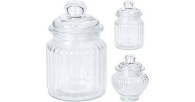 VOORRAADPOT GLAS 2 ASSORTIE VORMEN 12CM