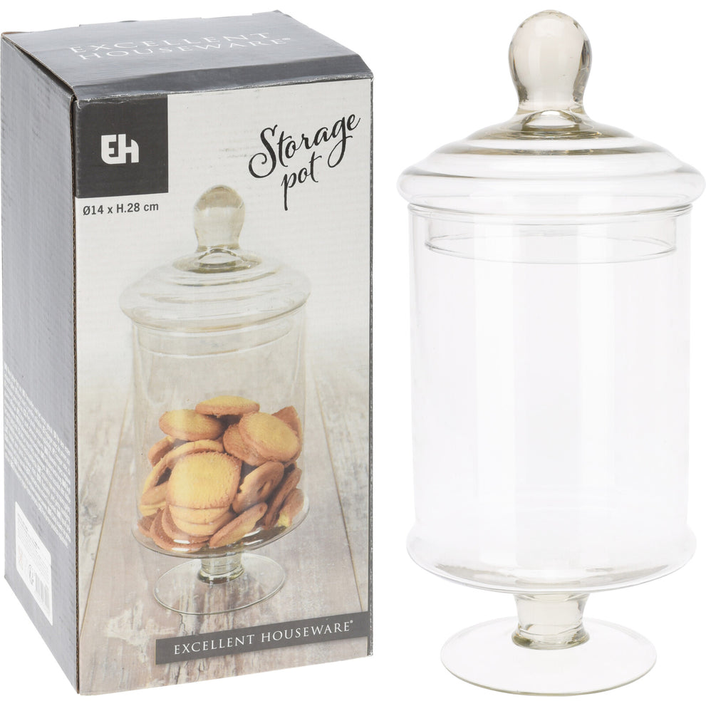 VOORRAADPOT GLAS MET DEKSEL D14 H26CM HELDER