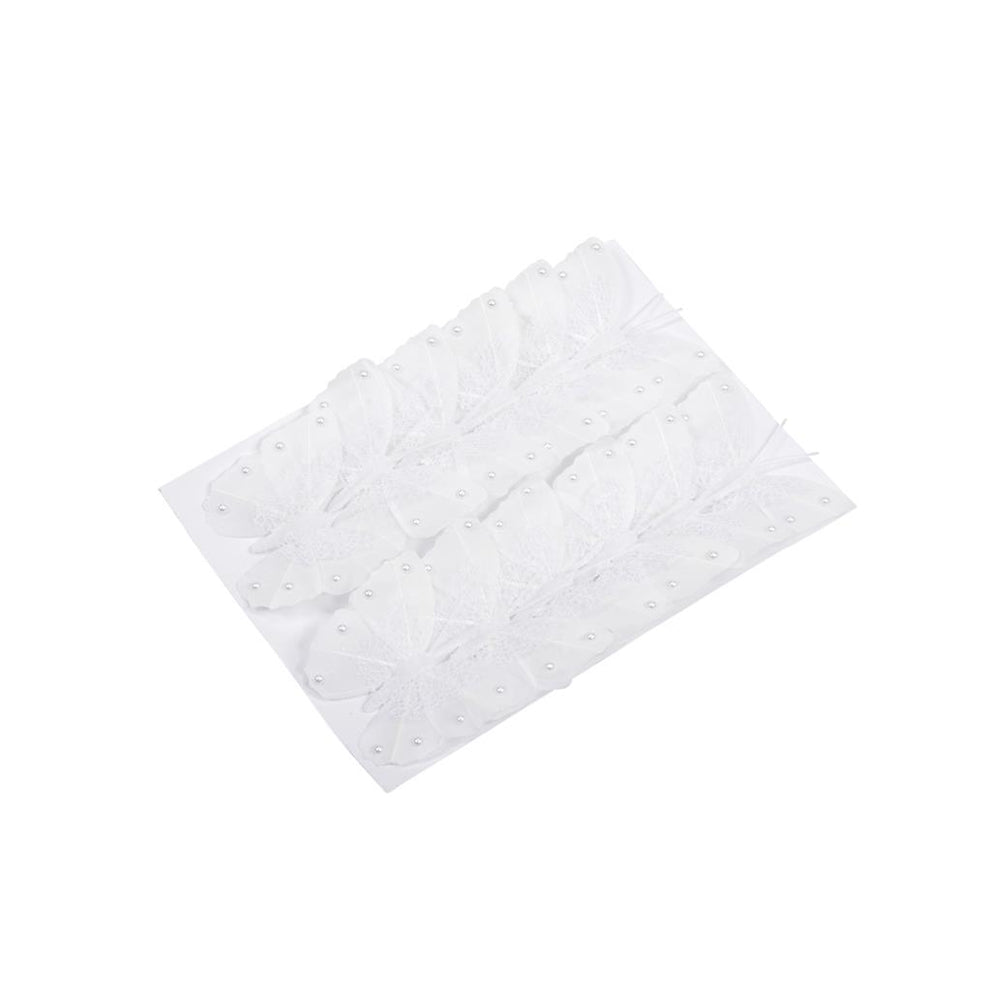 w/b. 12 feather butterflies/wire white 8 cm