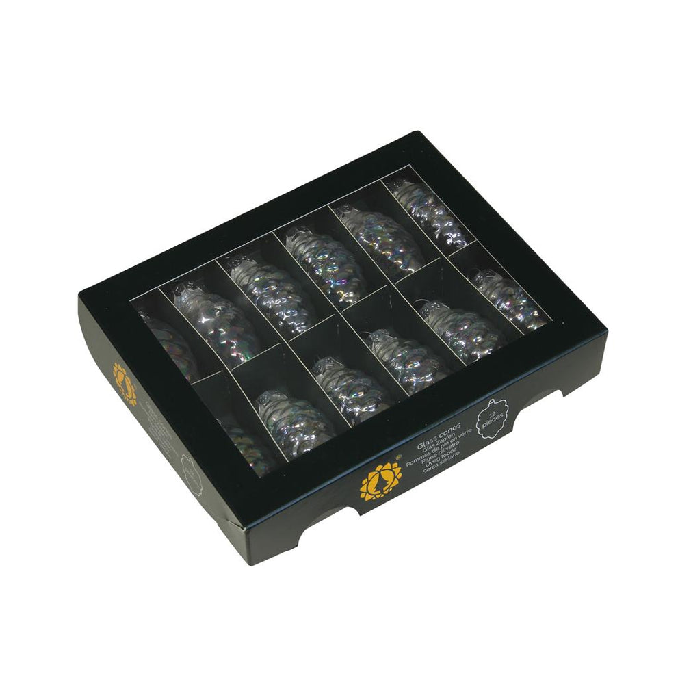w/b. 12 glass cones/cap clear pearl 60 mm