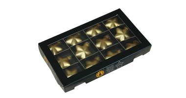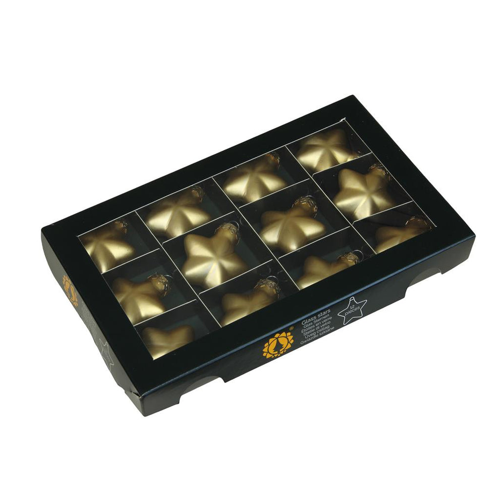 w/b. 12 glass stars/cap bright gold mat 40 mm