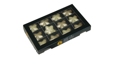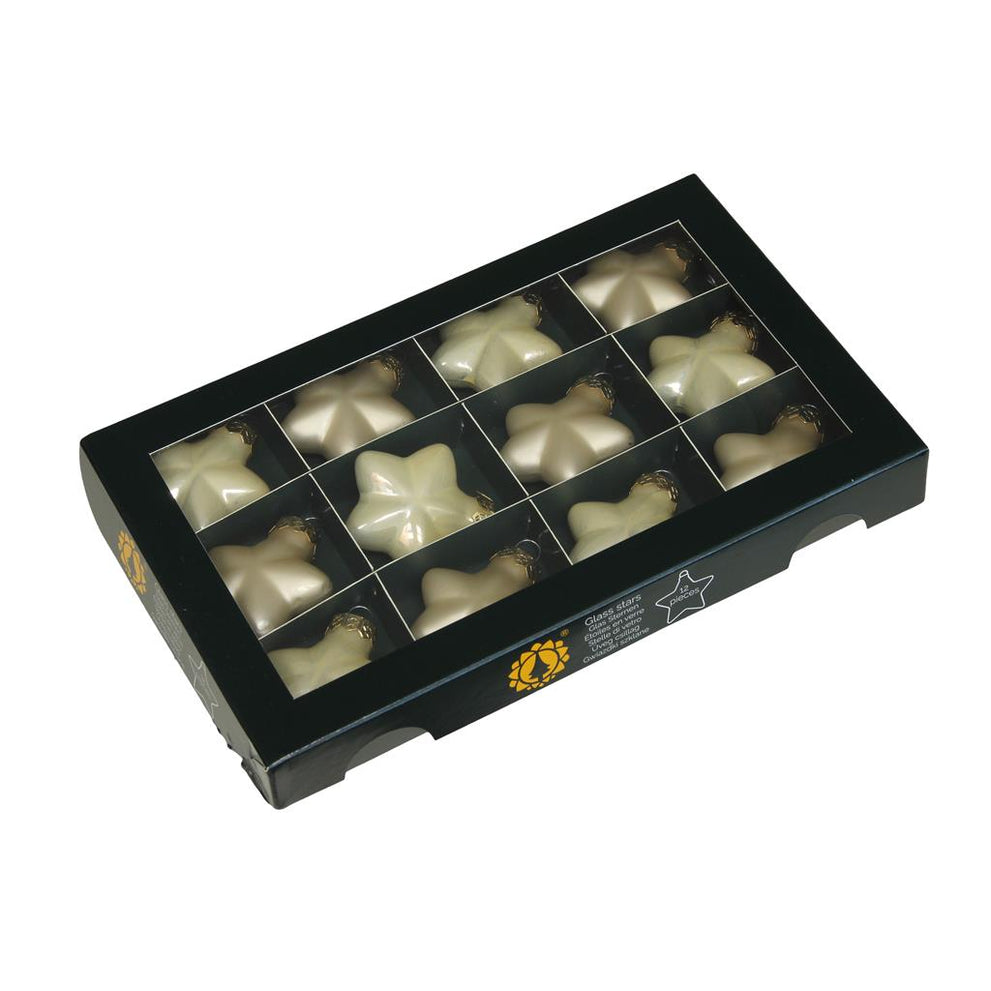 w/b. 12 glass stars/cap champagne combi 40 mm
