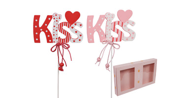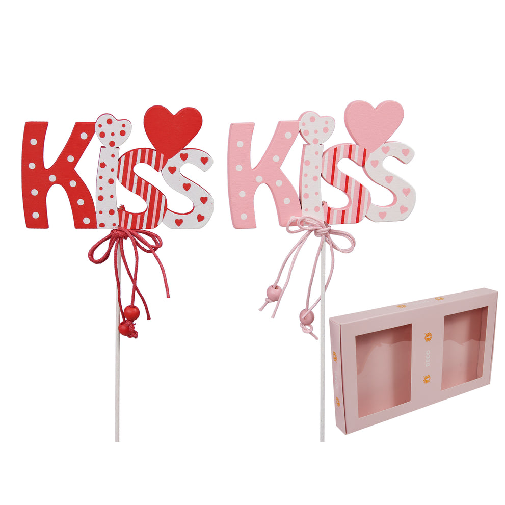 w/b. 12 wooden "kiss"/stick 2 ass. red/pink 9x5.5 cm