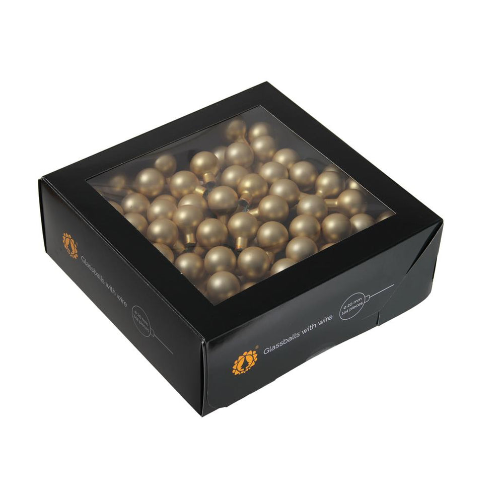 w/b. 144 glassballs/wire bright gold mat 20 mm