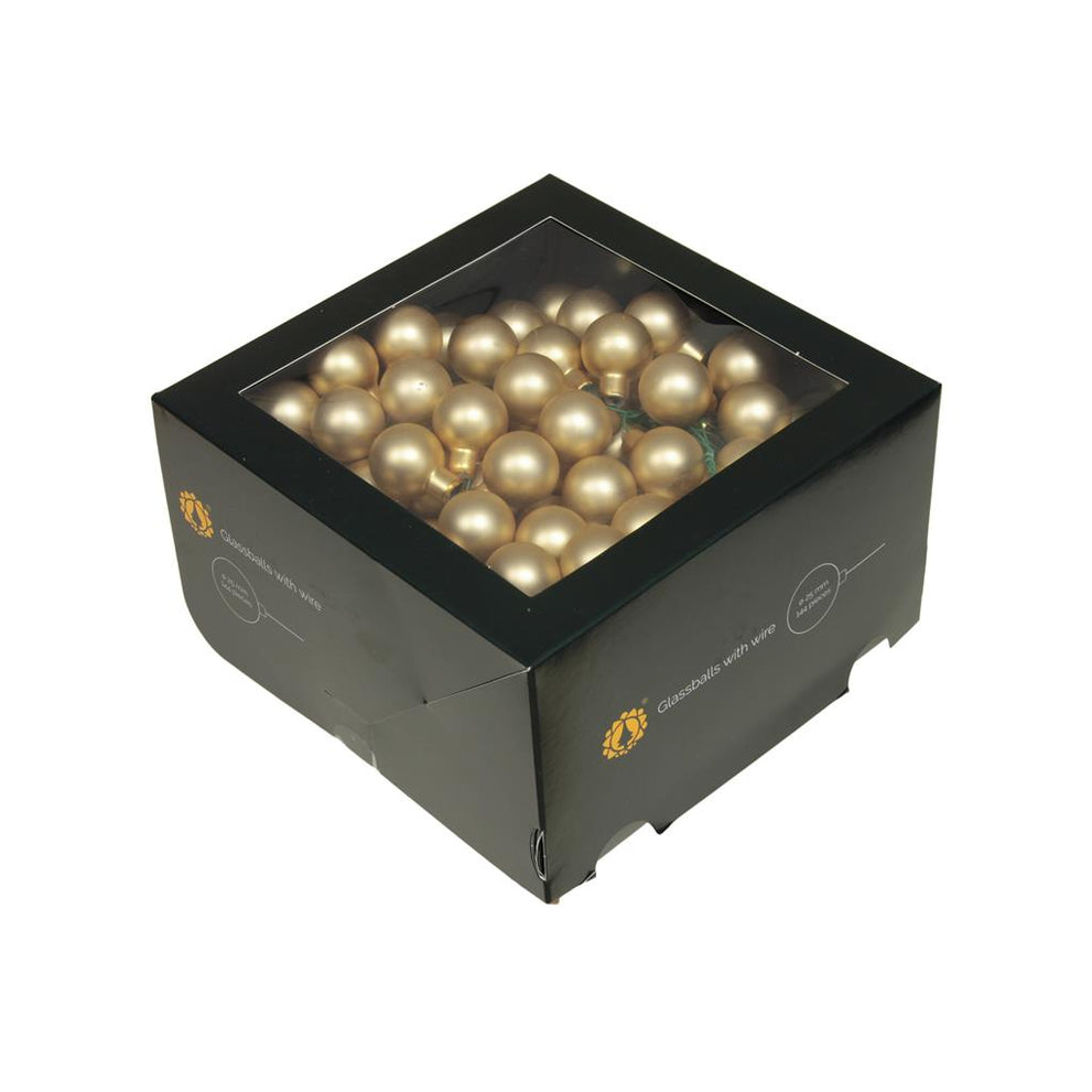 w/b. 144 glassballs/wire bright gold mat 25 mm