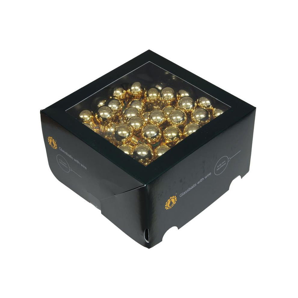 w/b. 144 glassballs/wire bright gold shiny 25 mm