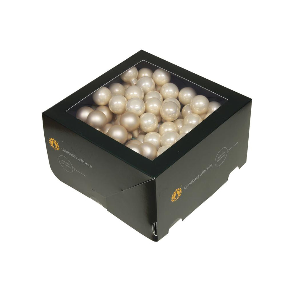 w/b. 144 glassballs/wire champagne combi 25 mm