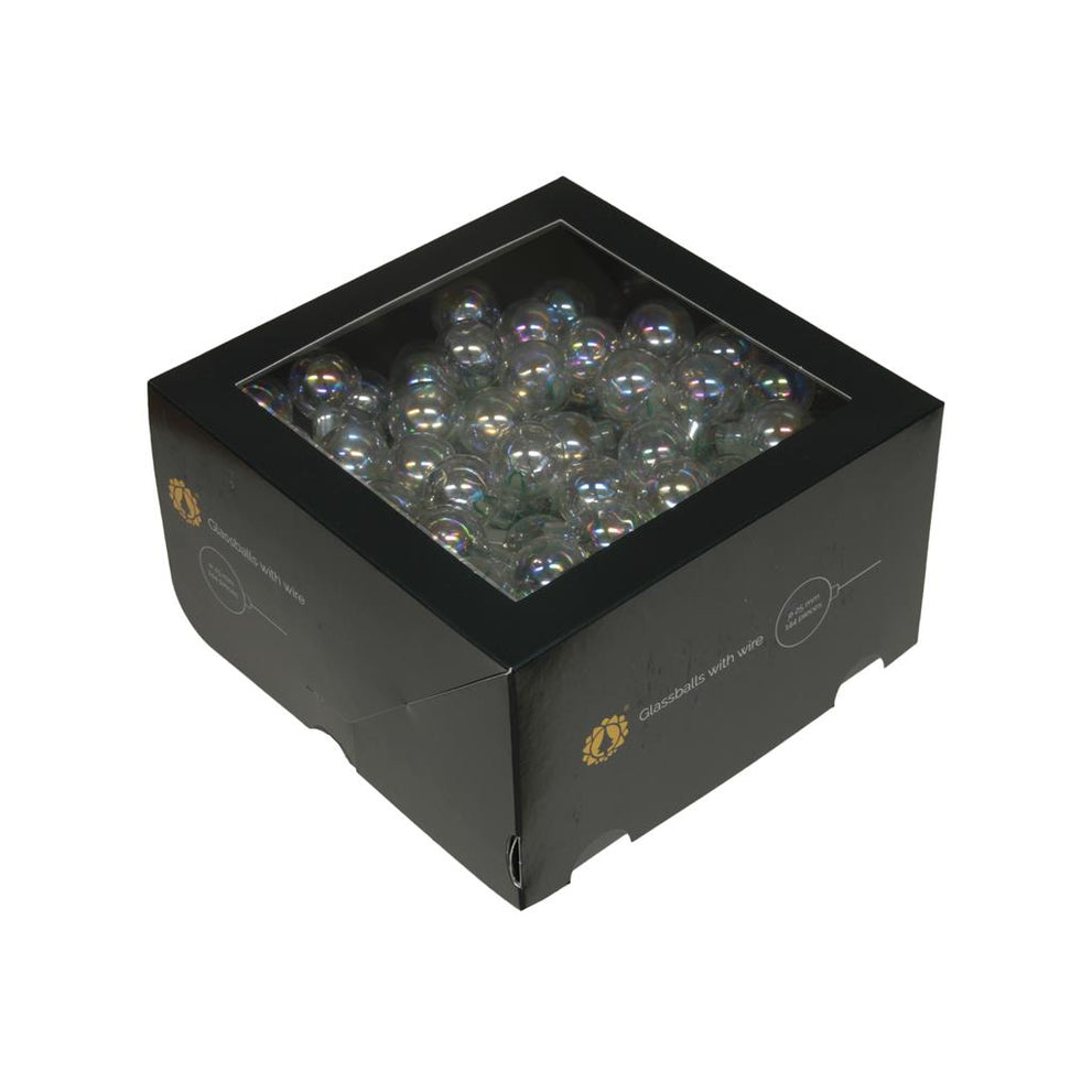w/b. 144 glassballs/wire clear pearl 25 mm
