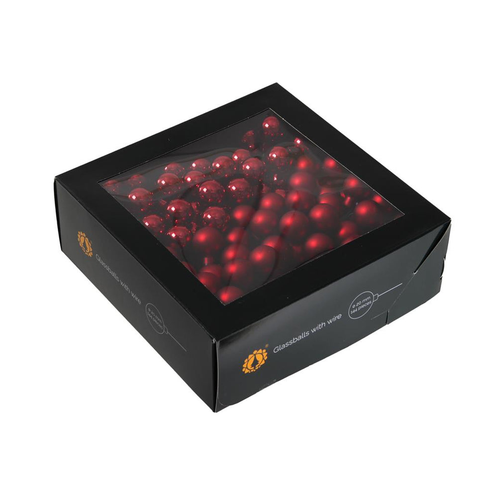 w/b. 144 glassballs/wire dark red combi 20 mm