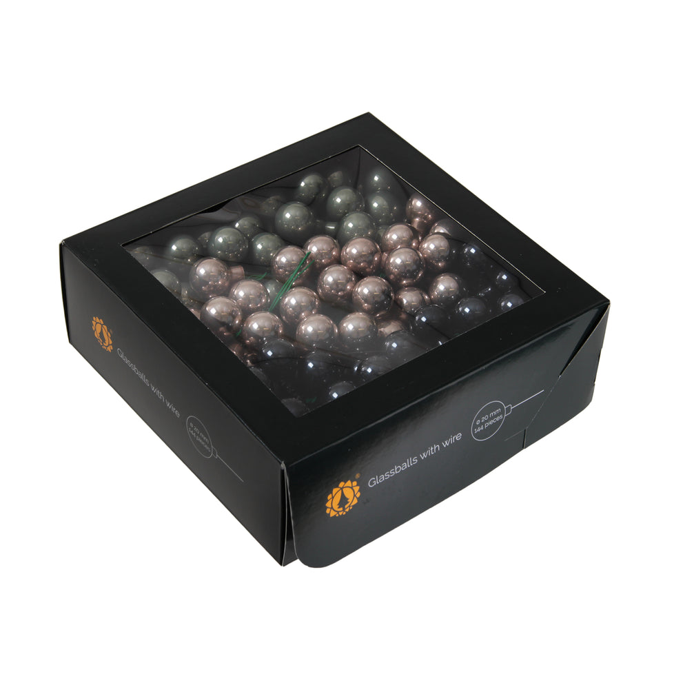 w/b. 144 glassballs/wire juniper 20 mm