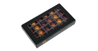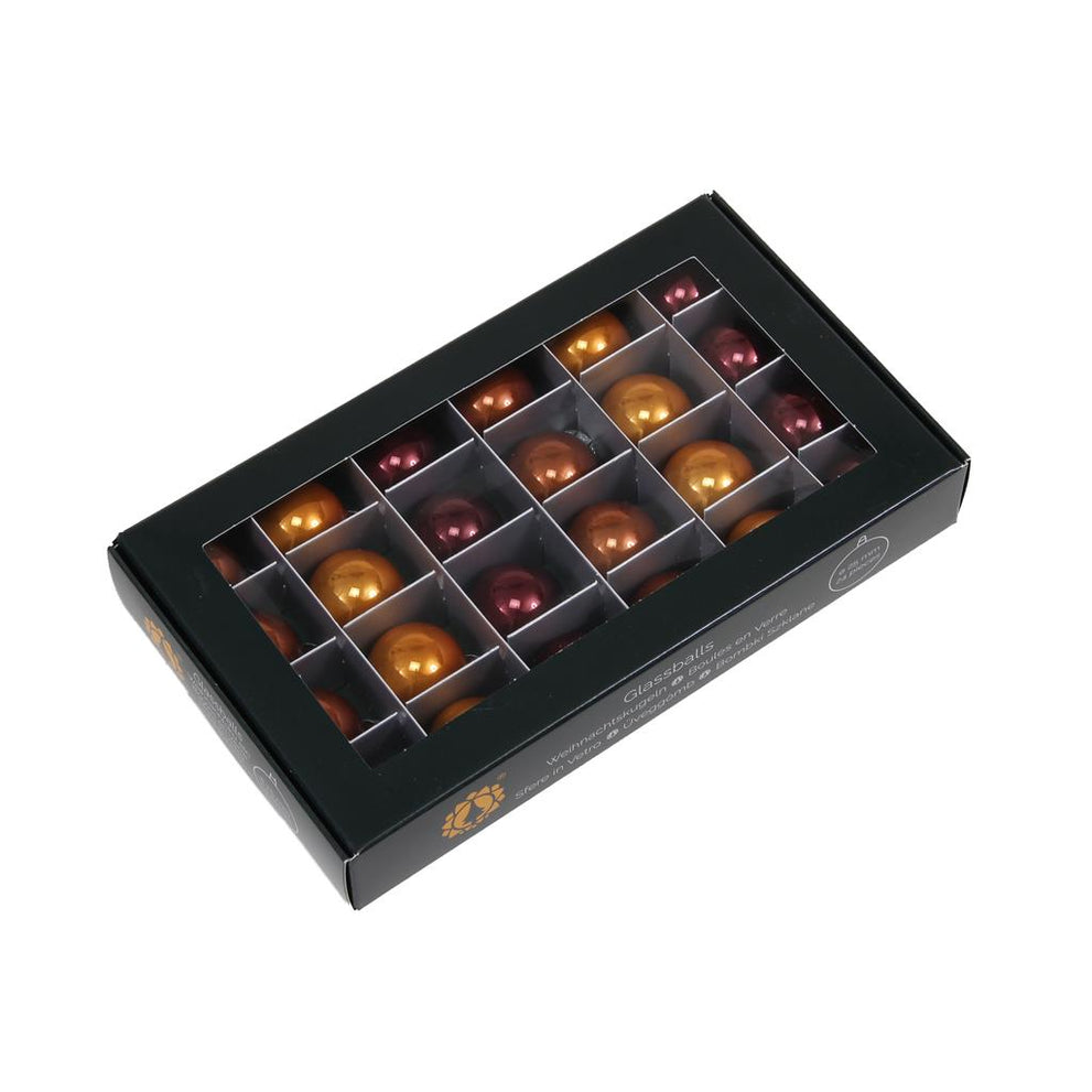 w/b. 24 glassballs/cap caramel brown 25 mm