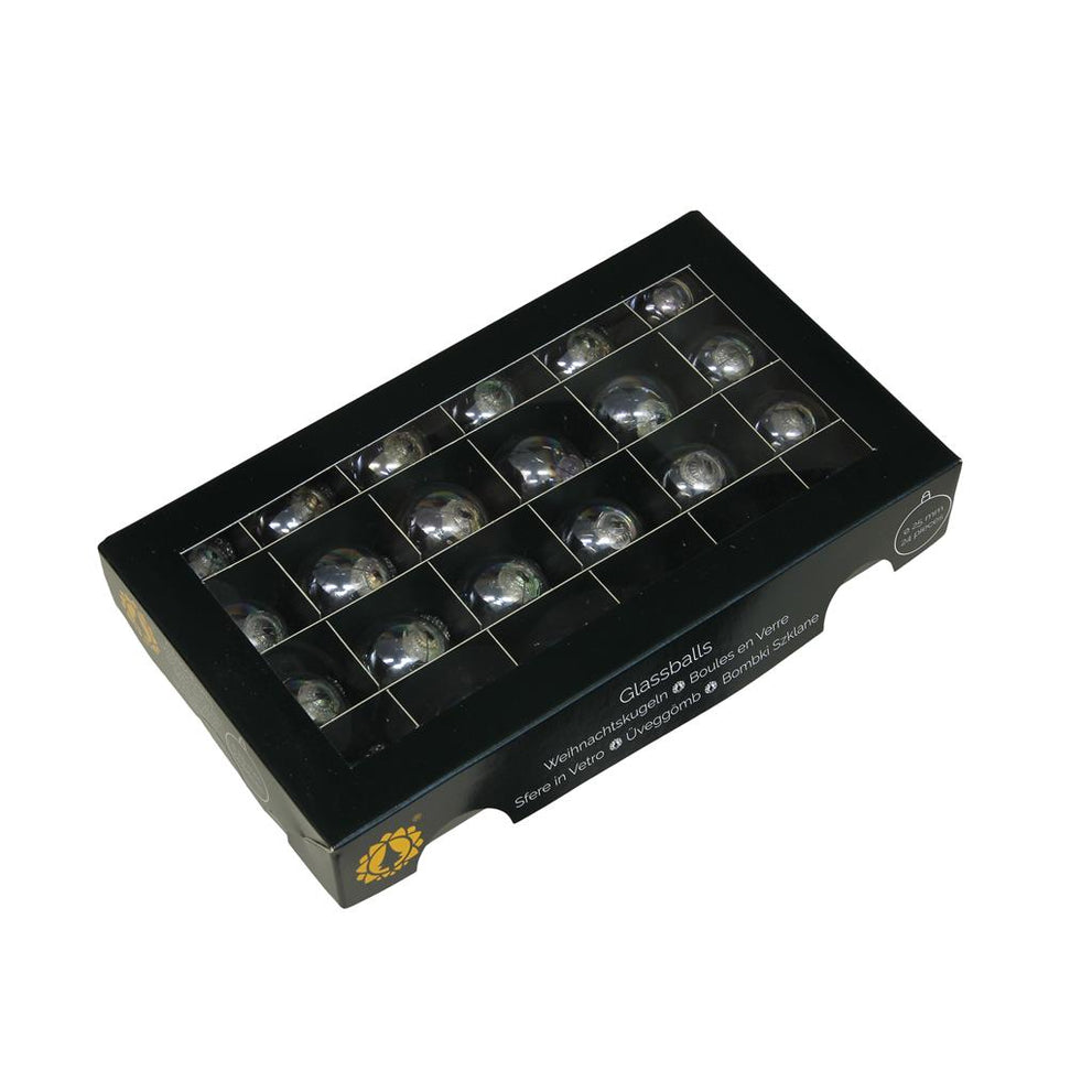 w/b. 24 glassballs/cap clear pearl 25 mm
