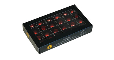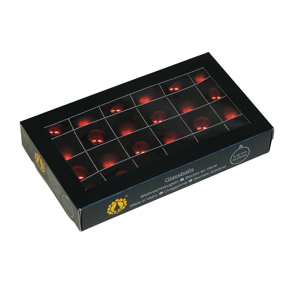 w/b. 24 glassballs/cap dark red combi 25 mm