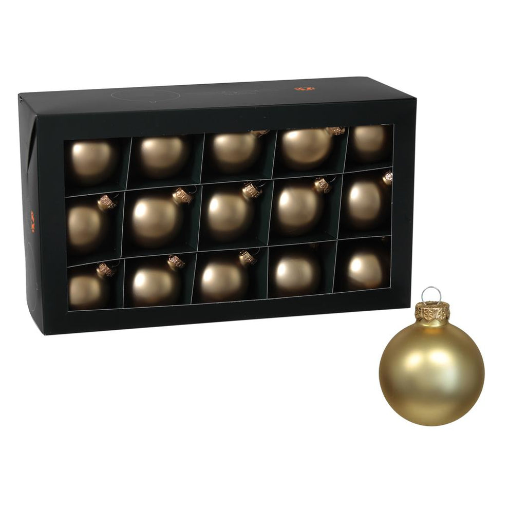 w/b. 30 glassballs/cap bright gold mat 57 mm